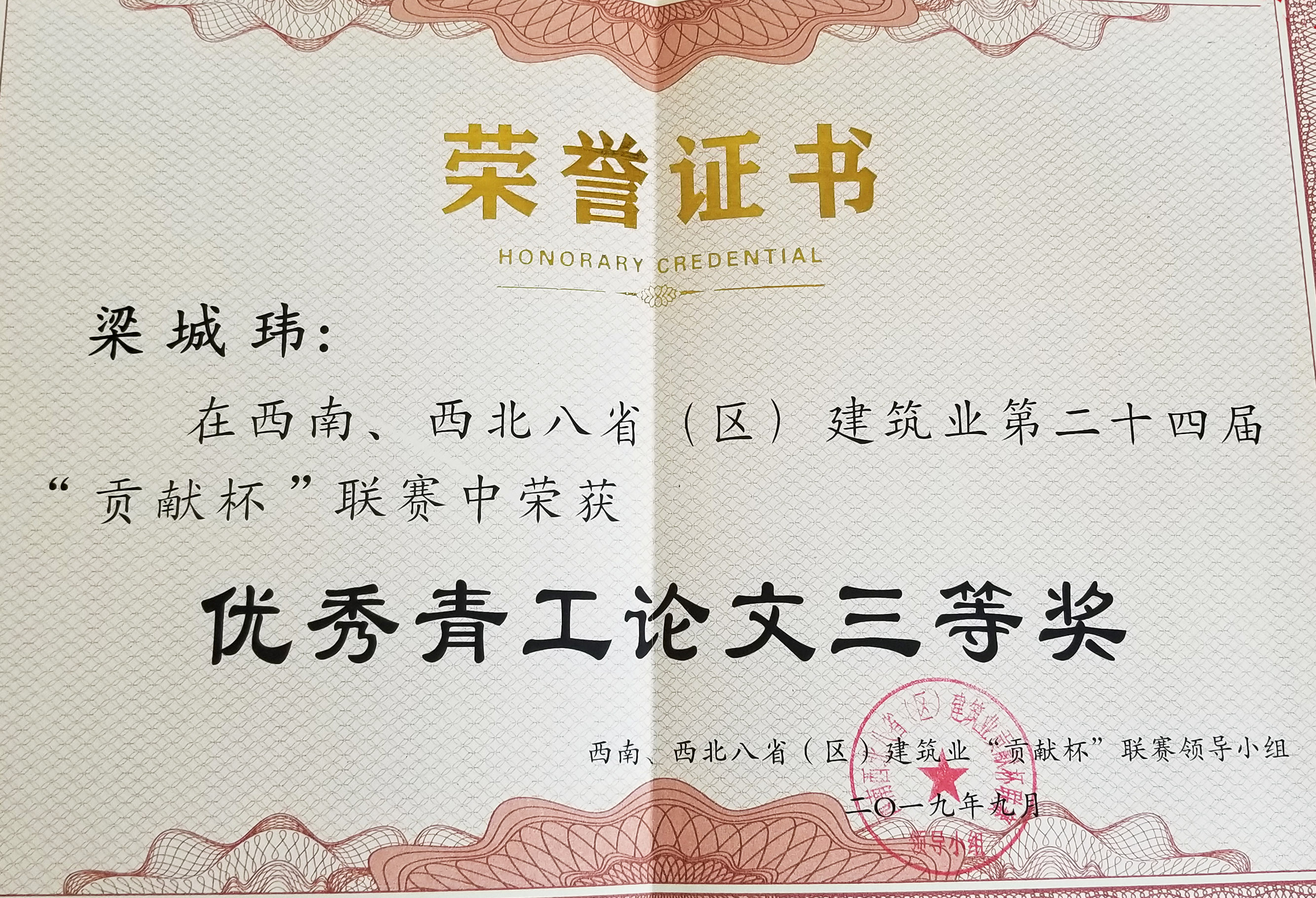 今日,西南、西北八省(區(qū))建筑業(yè)第二十四屆“貢獻(xiàn)杯”聯(lián)賽總結(jié)表彰會在太原舉行。集團(tuán)公司陜西奧體中心體育館項目青年突擊隊榮獲“優(yōu)秀青年突擊隊”榮譽(yù)稱號,梁城瑋撰寫的《不忘跟黨初心,牢記青春使命----新時代下如何讓青年員工與企業(yè)相融相依》榮獲“優(yōu)秀青工論文”三等獎,為集團(tuán)公司品牌建設(shè)再添新彩。