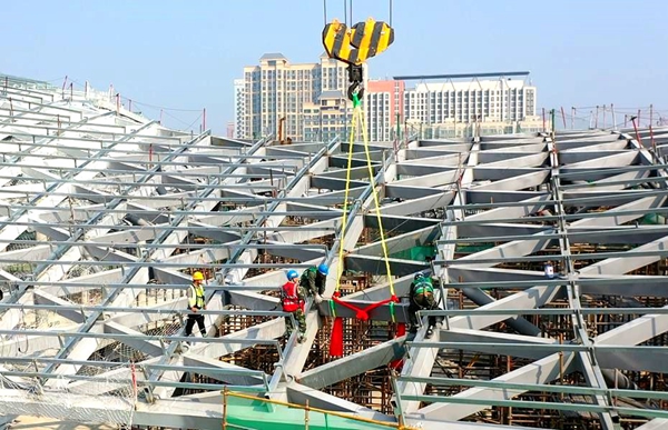 西奧體中心項目舉行鋼結構工程合攏儀式
