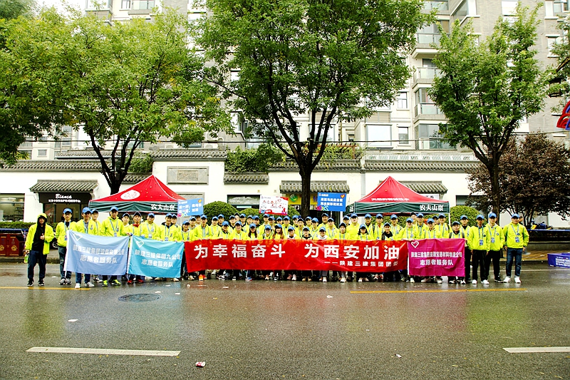 10月20日早上7時30分,2019西安國際馬拉松賽在永寧門激情開跑,來自世界30多個國家和地區的3萬多名選手齊聚西安,以奔跑的方式穿越千年古都。 為確保賽事的順利進行,集團公司團委發起組織志愿者服務隊,志愿者在進行崗前培訓后,于20號凌晨參與到賽事服務當中,200余名志愿者、56張補給桌,5公里補給站,23公里補給站,他們在寒風中始終保持微笑,他們在大雨中始終堅守著崗位,他們用認真嚴謹、守時愛崗、團結協作的志愿者精神,在優質的賽事服務中展現出了三建青年良好的精神風貌。