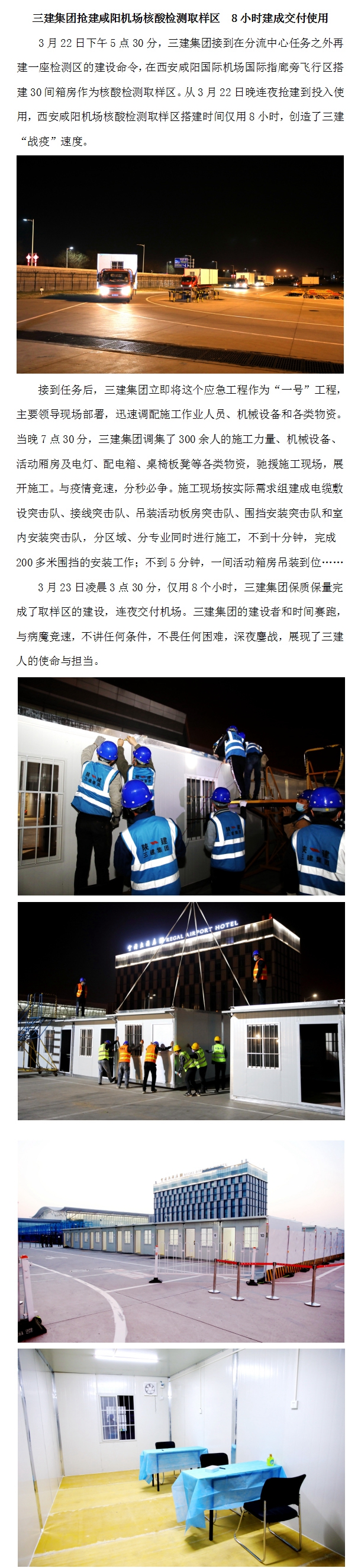 三建集團搶建西安咸陽機場核酸檢測取樣區 8小時建成交付使用