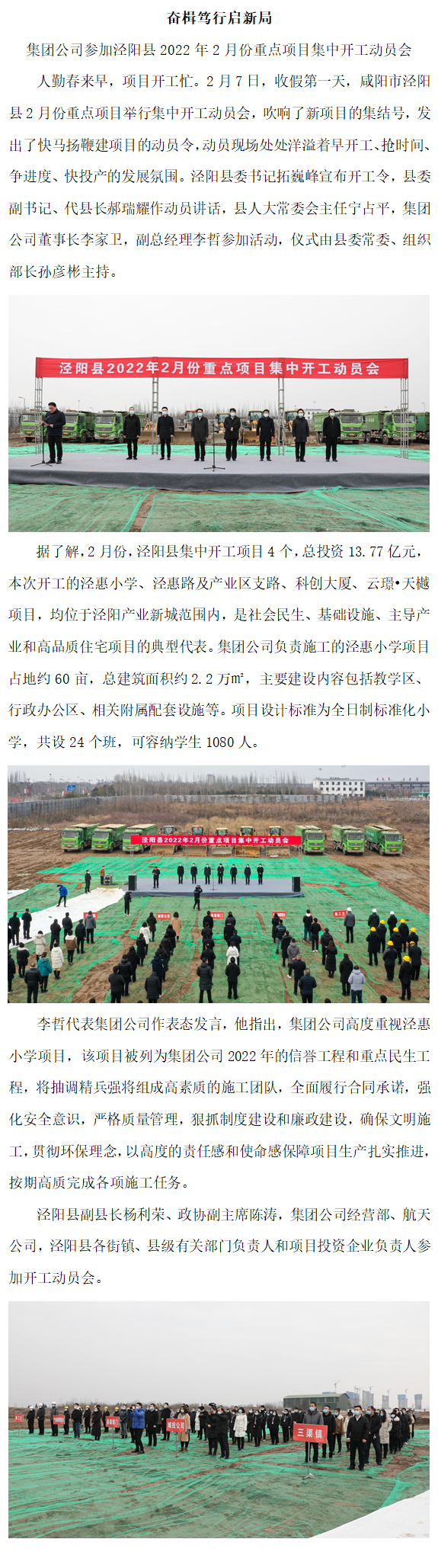 奮楫篤行啟新局——集團(tuán)公司參加涇陽縣2022年2月份重點(diǎn)項(xiàng)目集中開工動員會