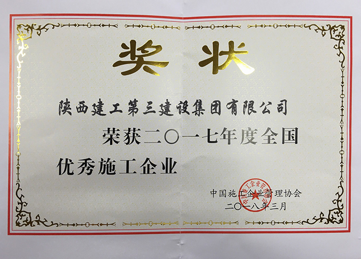 集團公司榮獲“全國優秀施工企業”稱號
