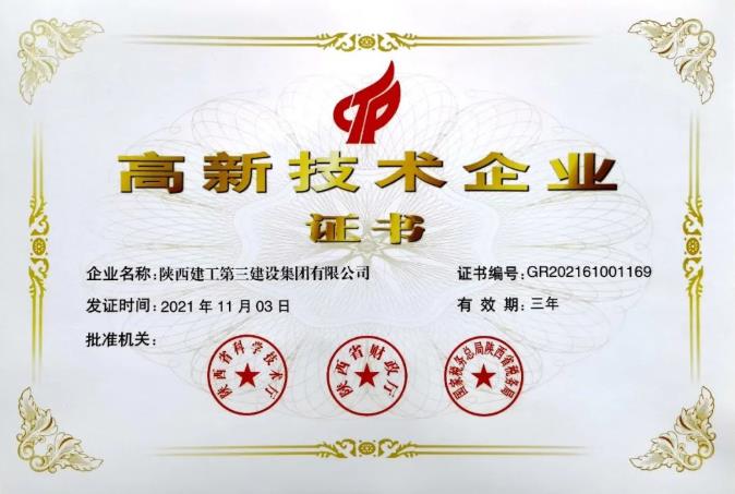 陜建三建集團通過國家級高新技術企業認定