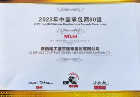 陜建三建集團榮獲“中國承包商80強”第 64位